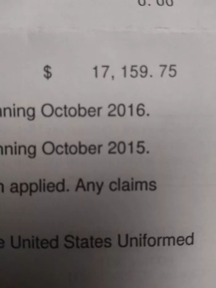 今天收到了那次的医疗账单——不到两个小时的救助护理加一片Xanax(一种抗焦虑药物)收了我4366美元…”
