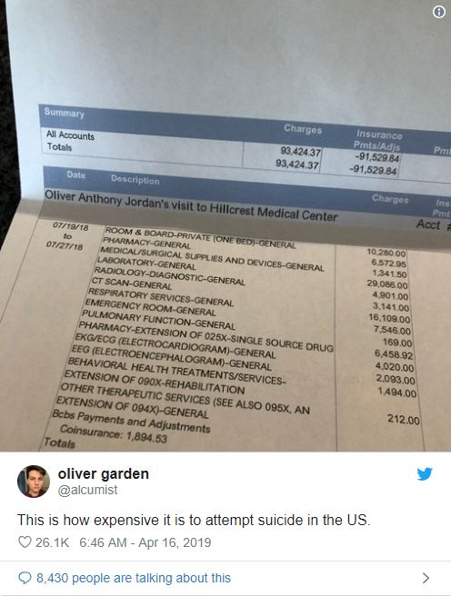 “虽然被救了回来,但比自杀更可怕的,是在美国被救治的医疗账单啊…”