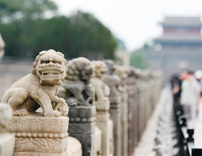 7月7日是“七七事变”88周年纪念日。88年前,“七七事变”在北京西南宛平城外的卢沟桥爆发,拉开了中华民族全面抗战的序幕。图为卢沟桥上的石狮子。新华社记者 张晨霖摄