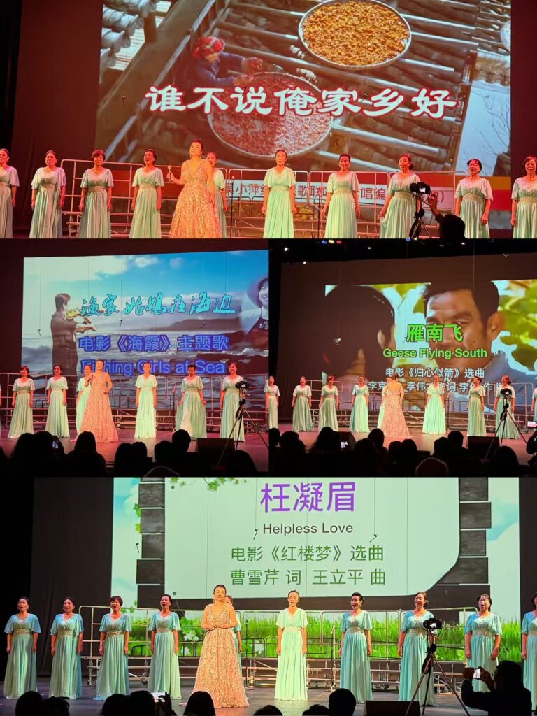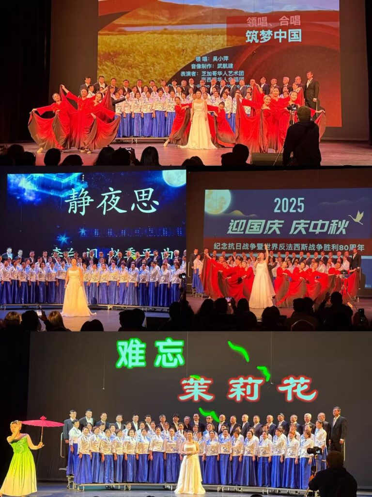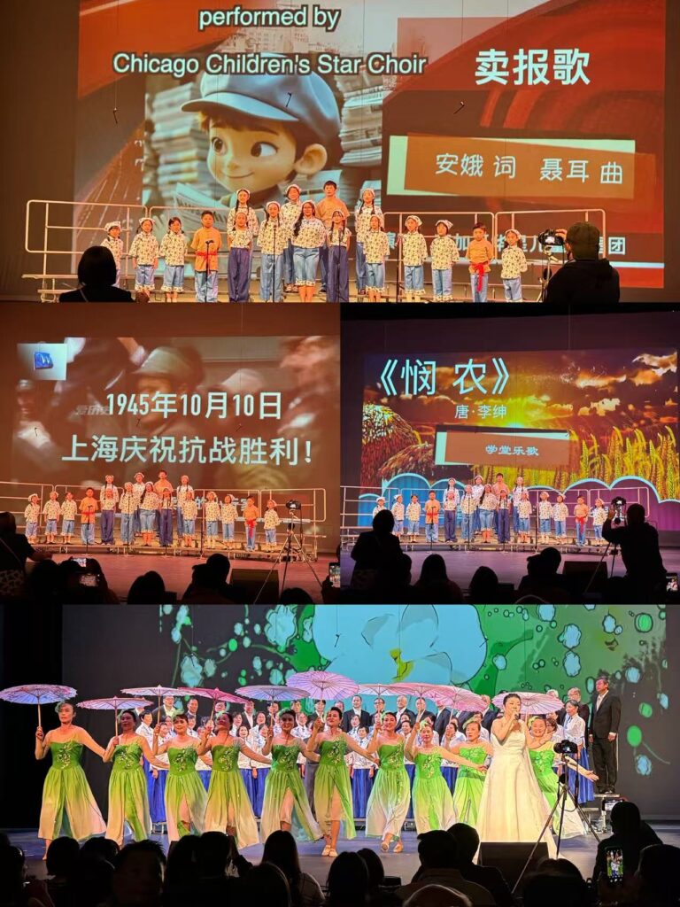 演出结束时,吴小萍在谢幕致辞中感谢芝加哥华人艺术团的精心组织,感谢侨界朋友们的热情支持。她动情地说:“能够在抗战胜利80周年、中秋和国庆这一特殊时刻,用歌声与大家一起铭记历史、传递爱与希望,是我一生难忘的经历。愿音乐成为我们心灵的桥梁,把爱与和平传递给每一个人。”