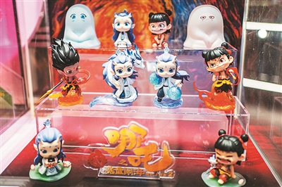 位于上海南京路步行街的泡泡玛特全球旗舰店内展示的《哪吒之魔童闹海》天生羁绊系列手办盲盒,吸引了不少消费者。王初摄(人民视觉)