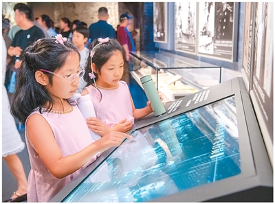 两名小观众参观中国人民抗日战争纪念馆主题展览。翁奇羽摄(人民图片)