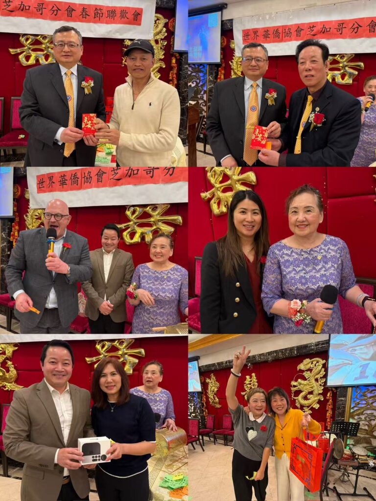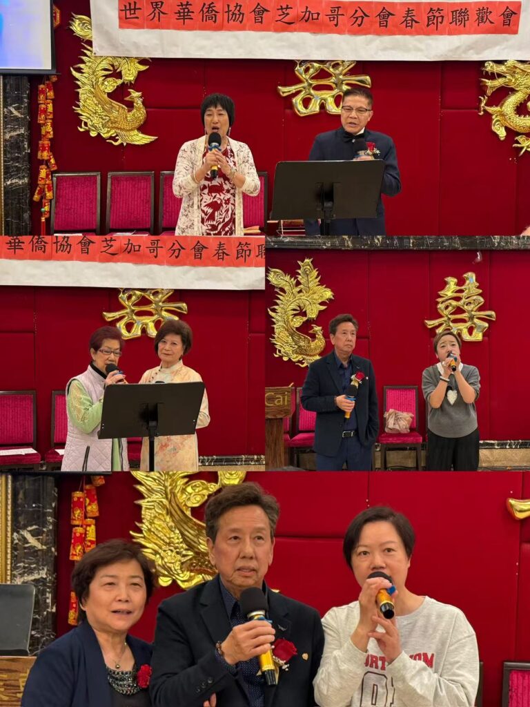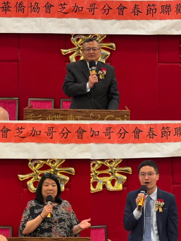 驻芝加哥台北经济文化办事处处长类延峰、侨教中心雷棋在致辞中表示,华侨社团在凝聚侨心、弘扬中华文化方面发挥着重要作用。世界华侨协会在促进社区交流与文化传承方面所作出的积极贡献,并鼓励大家在新的一年继续携手合作,加强联系,共同推动侨社繁荣发展。