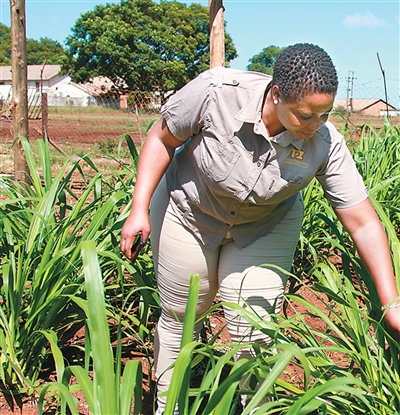 在津巴布韦西马绍纳兰省举行的中国援津巴布韦菌草技术项目组技术培训班上,学员在观察菌草。塔法拉摄(新华社发)