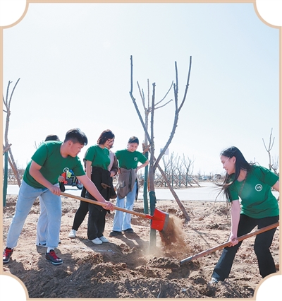 中蒙两国青少年参加植树活动。
