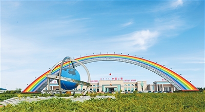 二连浩特公路口岸象征中蒙两国友谊的彩虹桥。