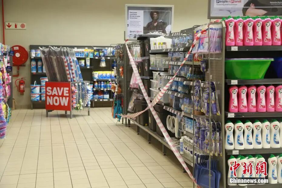 当地时间4日1日,南非约翰内斯堡一家超市内,凡属于南非政府规定的必需商品名录以外的物品,均被列为“禁止购买”,并被拉上封条。中新社记者 王曦 摄