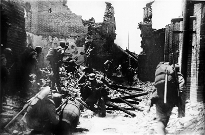 1938年初,为阻止日军进攻,中国军队先后调集兵力与日军展开徐州会战,并于4月上旬取得台儿庄大捷。图为中国军队与日军在台儿庄巷战。