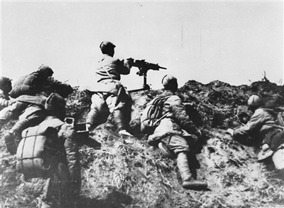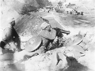 1940年8月20日至1941年1月24日,八路军在华北对日军发动一次大规模的进攻,陆续参战部队达105个团20余万人,称为百团大战,沉重打击了日军的侵略气焰。图为山西阳泉狮垴山战斗中的八路军机枪阵地。