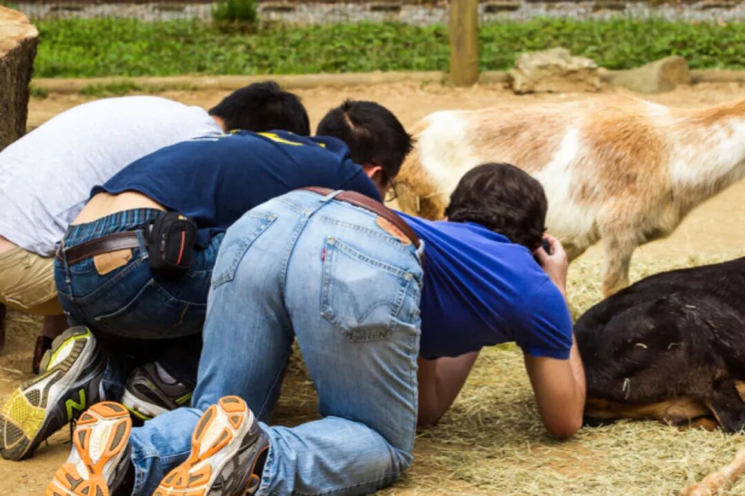 正在动物园测量排尿的学生们