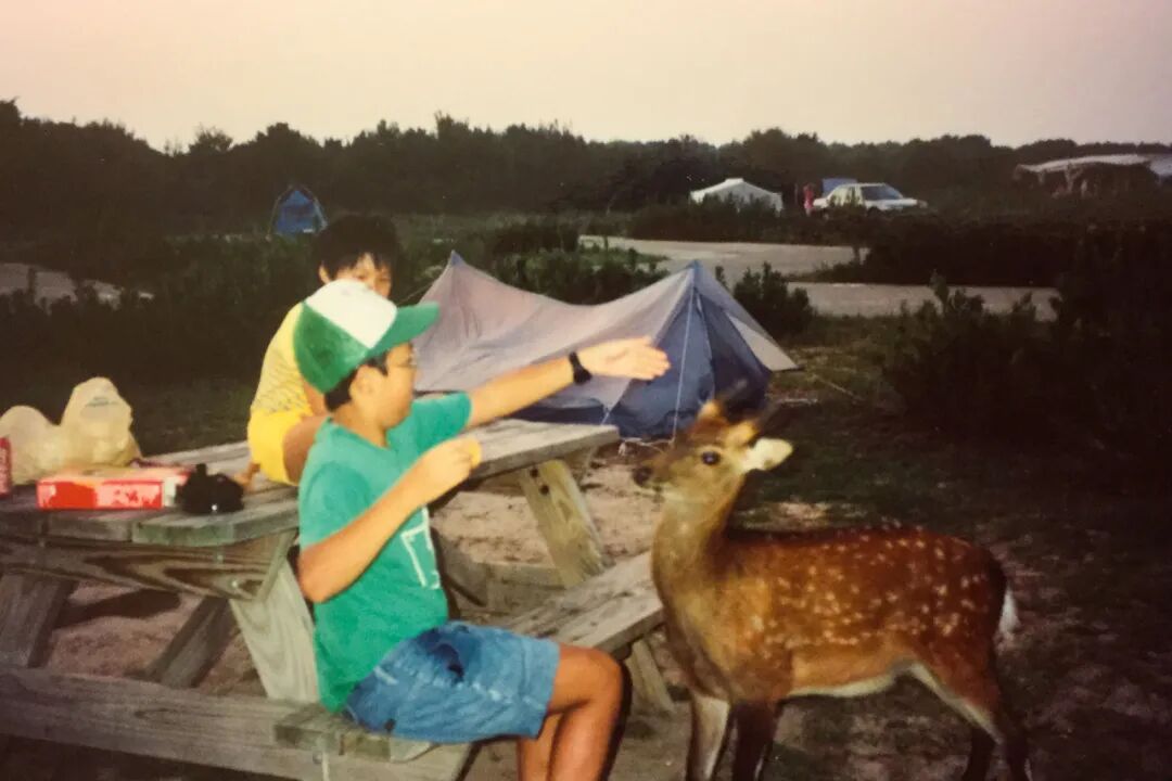 小时候,我们一家人经常去露营,去钓鱼。有一次在高速公路上,我爸爸看到边上躺着一只鹿,这只鹿身体还有点温暖,可能晚上被撞了。他就想把这个鹿带回家解剖一下,全家可以吃鹿。后来我们费了好大力气,终于把这头鹿装进车子里面,让它“坐”在我妹妹的旁边,一连坐了3个小时。那是我第一次解剖那么大的动物。