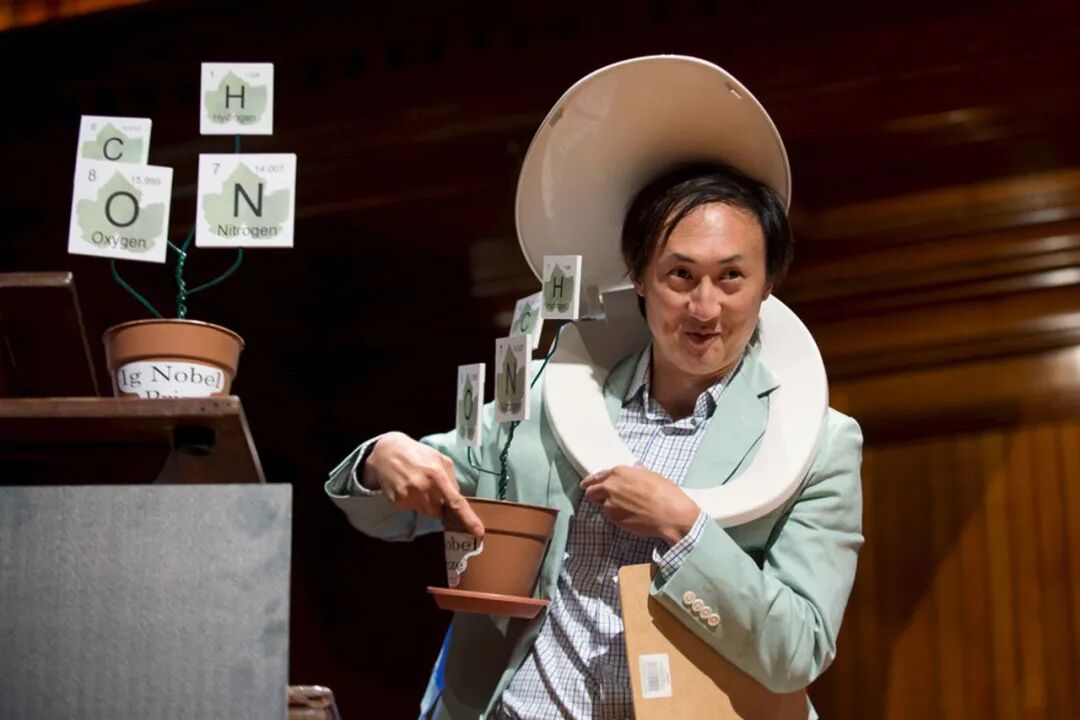 上:胡立德在办公室(图片来自 New York Times ,摄影:Melissa Golden)下:在2015年搞笑诺贝尔奖颁奖典礼上