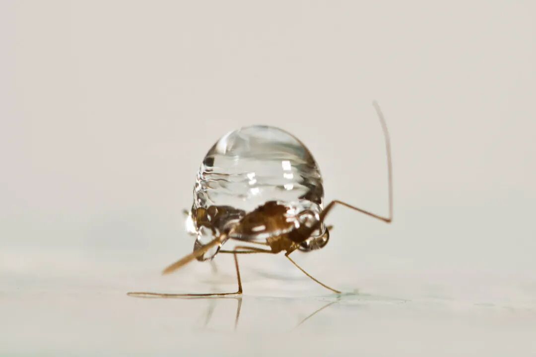 被雨滴击中的蚊子。因为蚊子会随着雨滴倾斜身体或随雨滴一同下落,故而不会被雨滴砸死。
