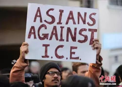 资料图为手举标语牌、针对美移民改革的抗议人士。 中新社发 陈钢 摄