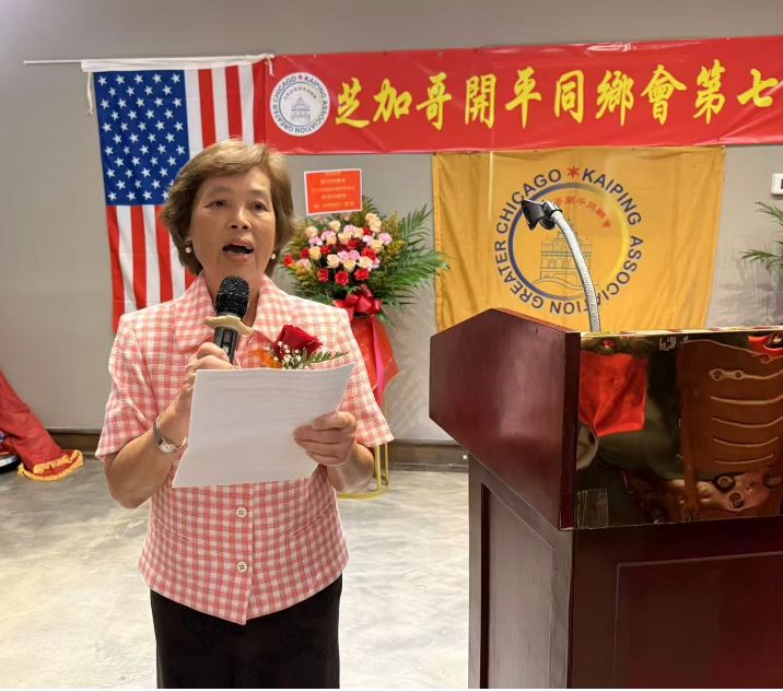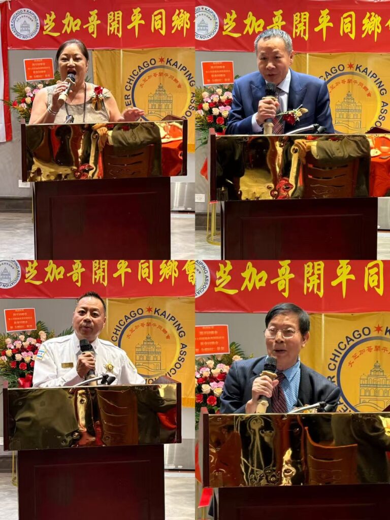 随后,多位嘉宾致辞,表达了对开平同乡会新一届理事团队的祝贺与期许。伊州众议员马静仪、第十一选区区长李惠华、华联会主席黄正东、第九分局局长麦健富等纷纷发表讲话,高度评价开平同乡会在团结乡亲、服务社区方面作出的贡献。