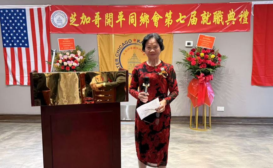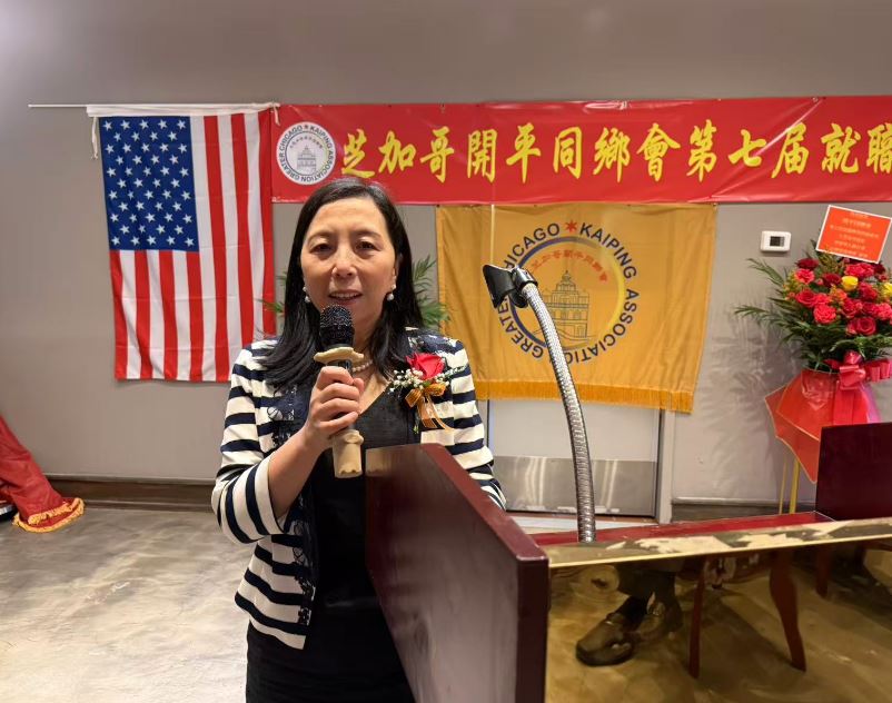荣休会长冯秀兰在致辞中深情回顾了自己在任期间与乡亲们携手走过的岁月,并祝愿新一届理事团队再创辉煌。接着,新任会长黄小萍发表热情洋溢的就职演说。她特别感谢中国驻芝加哥总领馆黄军英参赞、张军鹏侨务组长、张泽明领事、赵丹领事,以及伊州众议员马静仪、芝城警察局第九分局局长麦健富伉俪、华联会黄正东主席与郑征理事长等领导的光临。