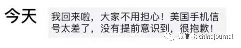 “美国手机信号太差了!”面对众人的牵挂,她在“朋友圈”写下感慨。