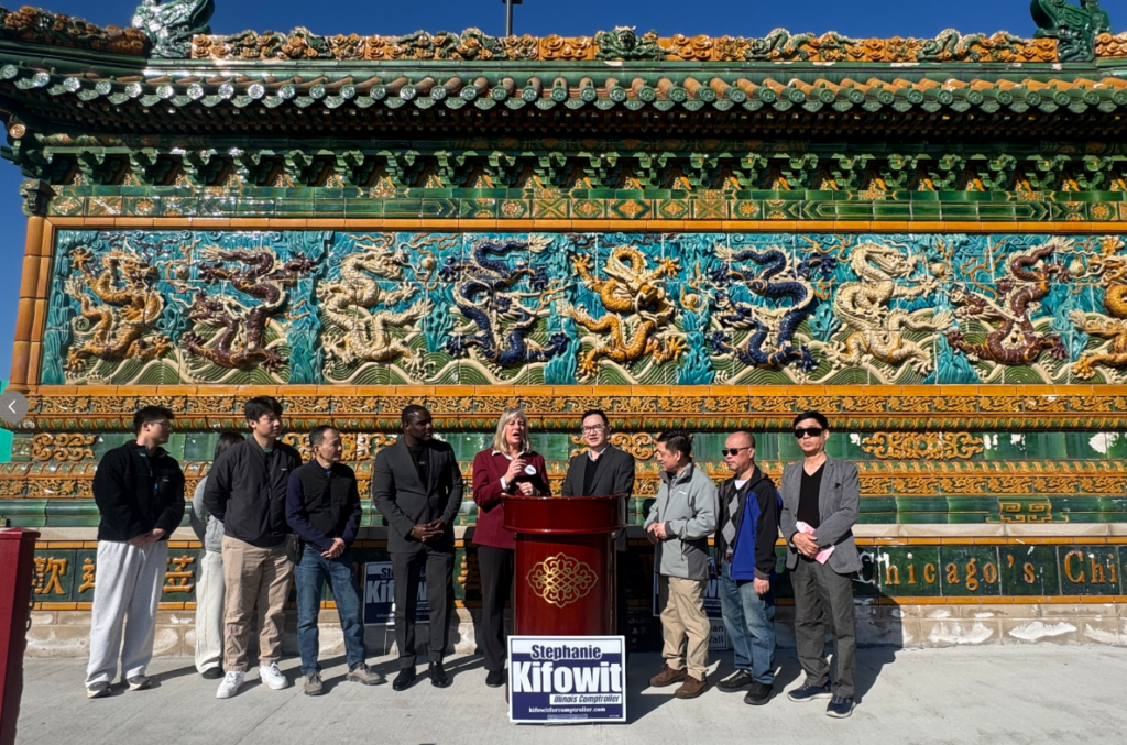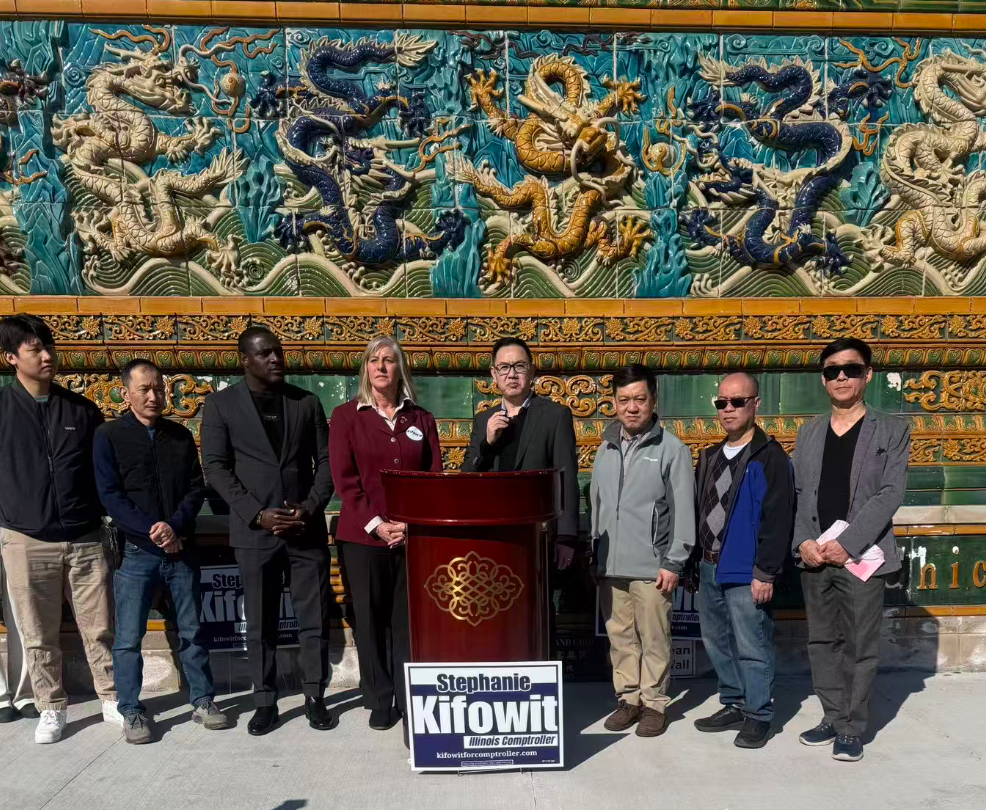 【神州时报讯】由芝加哥华商会主办的伊利诺伊州州主计长竞选新闻发布会于2月15日下午在芝加哥华埠地标——Nine Dragon Wall隆重举行。伊州州众议员Stephanie Kifowit在现场正式宣布参选伊利诺伊州主计长(Illinois State Comptroller),多位社区领袖及各界代表到场支持,气氛热烈。