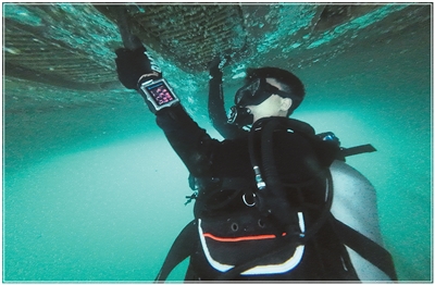 益丰船务员工在水下清理船底。