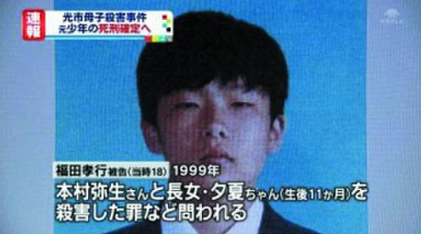 1999年,18岁的福田孝行奸杀了一名家庭主妇,并杀害了一名11个月大的女婴。情节恶劣至极,在当时一度引起轰动。