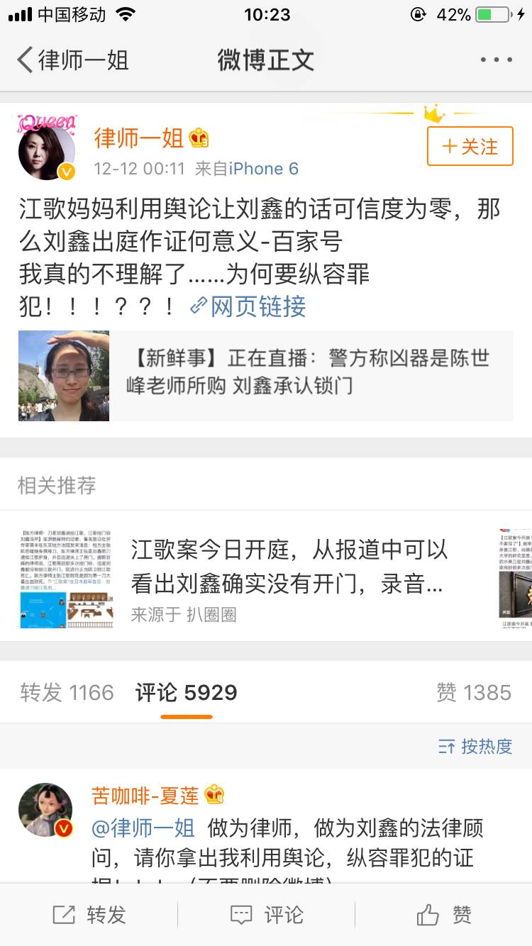 当天凌晨,她还在“义正言辞”diss江歌妈妈的律师,突然单方面宣布解约,称“由于某些原因停止为其辩护。”