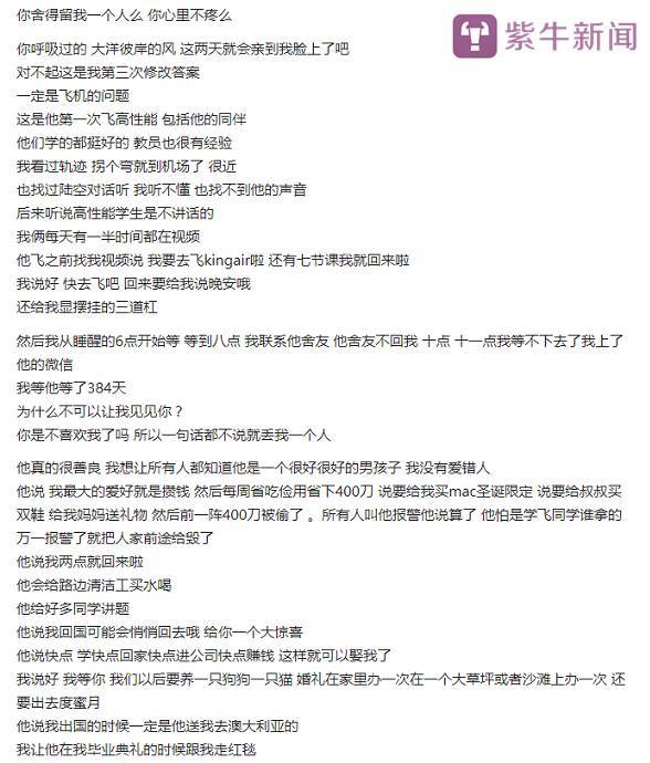 紫牛新闻记者和涛的女友在网上取得联系,对方表示很抱歉,不方便接受记者采访。后来她还反过来劝记者:“小姐姐别伤心了,具体发生了什么,我不能讲”。可以看出来这是一位非常善良的女孩。