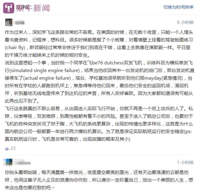 “看第一句就差点哭了”。这是一位网友在涛的悼文下的留言。教练机事故发生后,学员涛的女友,“没办法控制自己的情绪”,11日在自己的知乎上,发了一篇泣血长文悼念男友,引来近1500名网友洒泪跟帖。