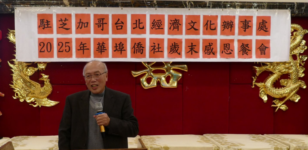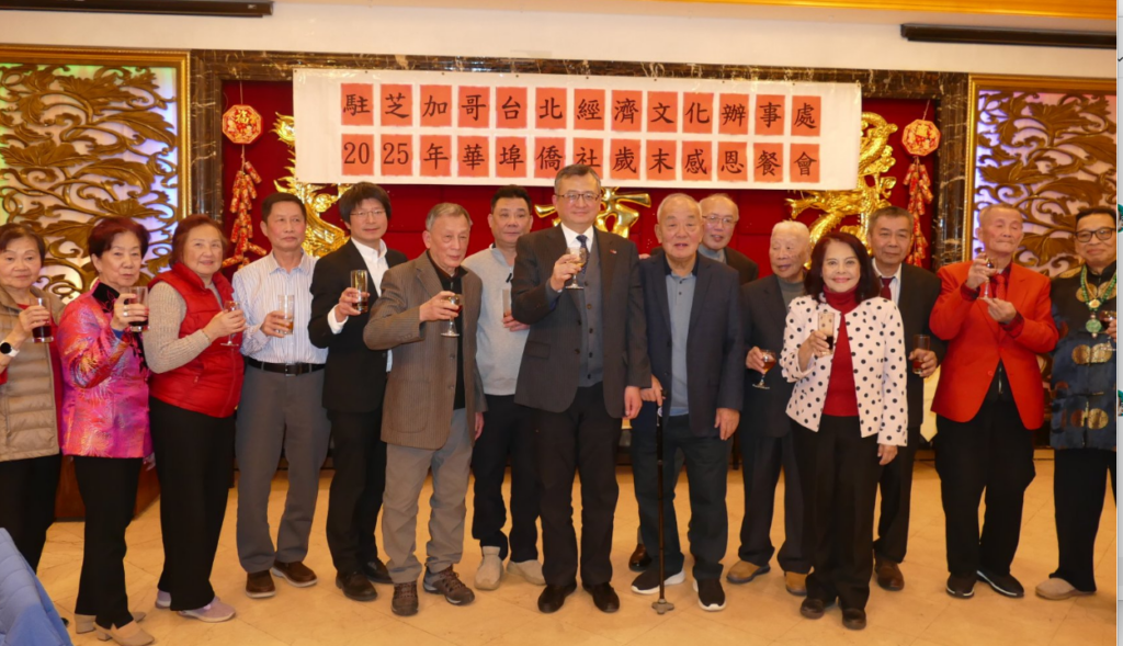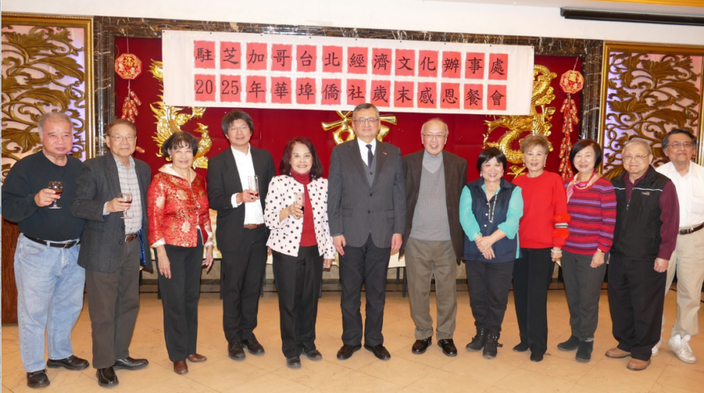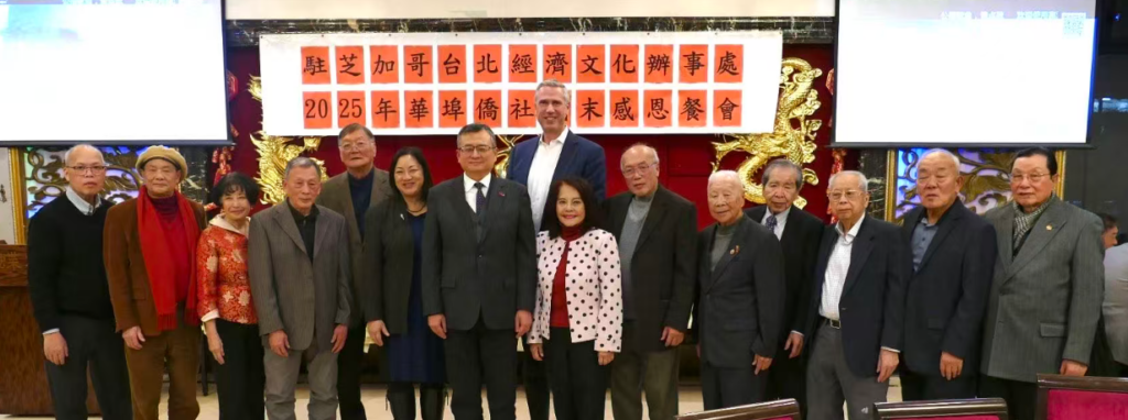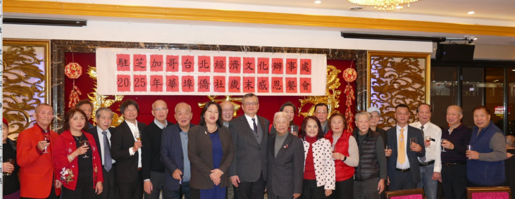 【神州时报讯】台北经济文化办事处类延峰处长于本周二(12月16日)下午6点在彩蝶轩举办年度岁末感恩餐会,宴请芝加哥各大侨团侨领代表;12月17日晚,类延峰处长又在汉记大酒楼设宴,与北华埠侨领代表欢聚交流。本次两场餐会由台北经济文化办事处与华侨文教服务中心共同主办,旨在感谢侨社过去一年来的支持、合作与付出,并进一步加强互动情谊,携手迎接新的一年。