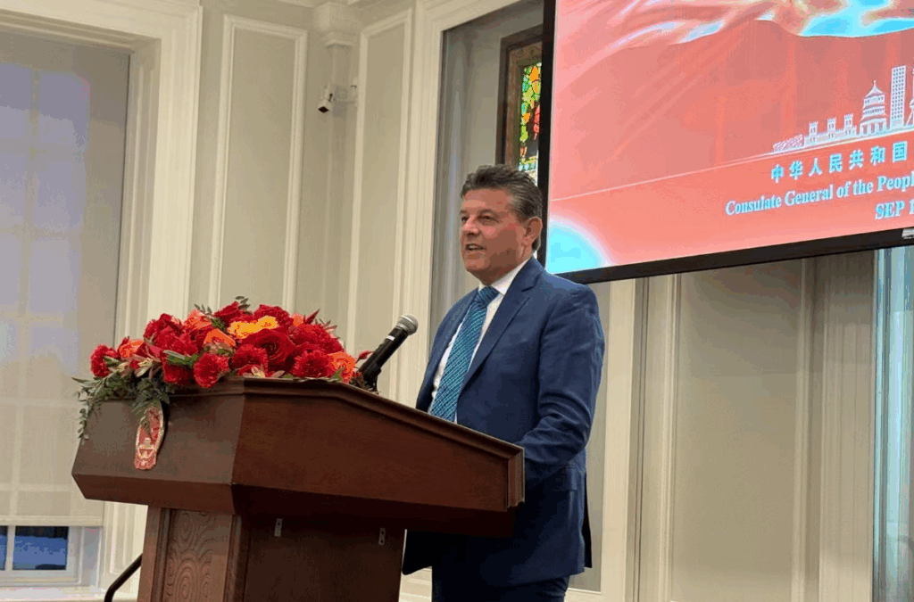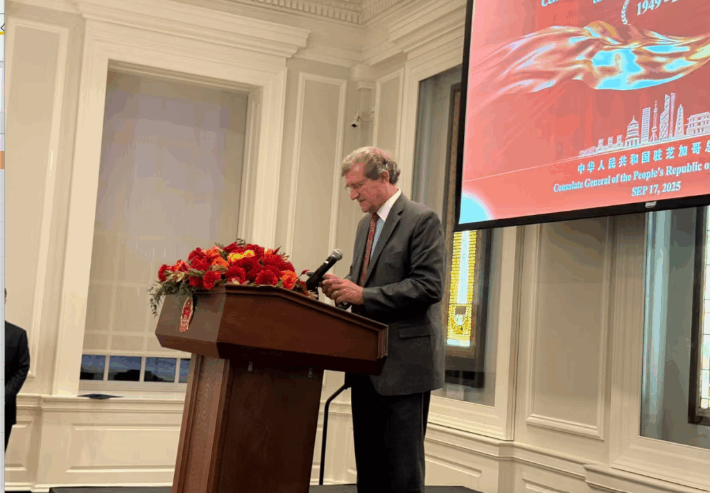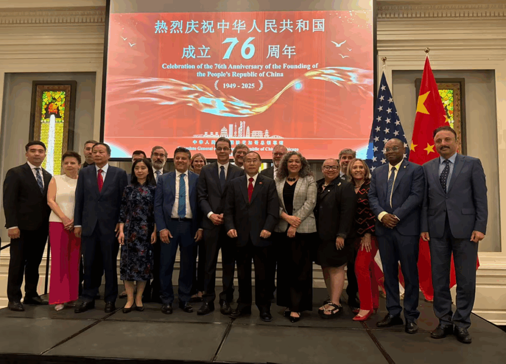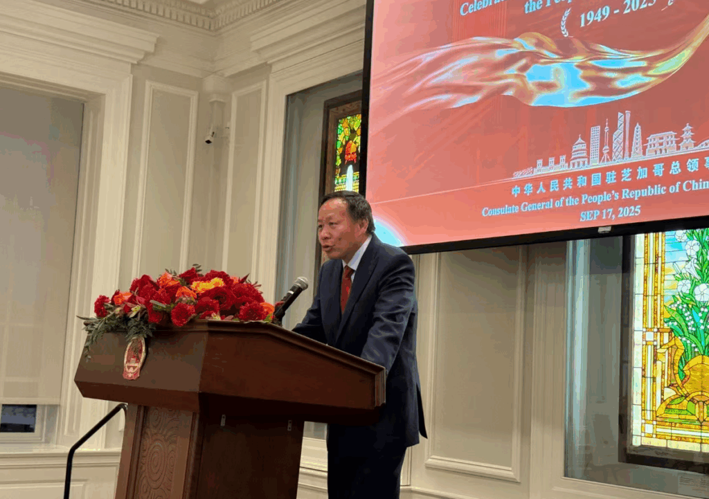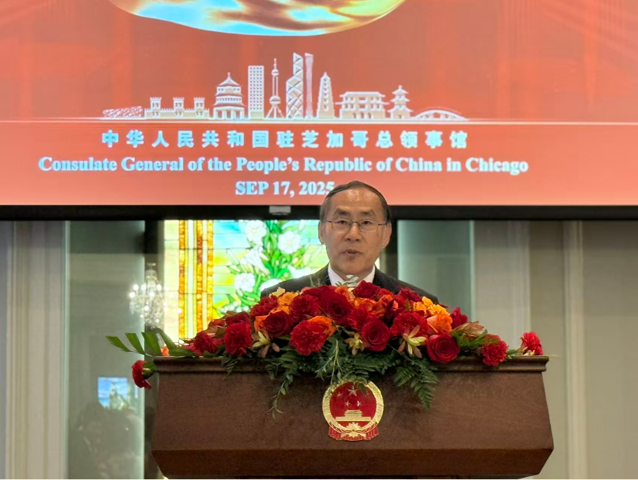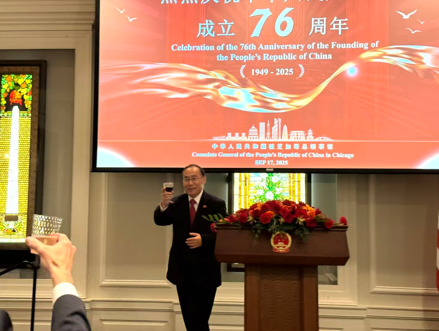 【神州时报讯】2025年9月17日晚,中国驻芝加哥总领馆在芝加哥历史博物馆隆重举办庆祝中华人民共和国成立76周年招待会。来自美国联邦、州、市政府官员,当地侨界、工商、教育、文化、媒体及各界友好人士近400人齐聚一堂,共同见证这一盛典。