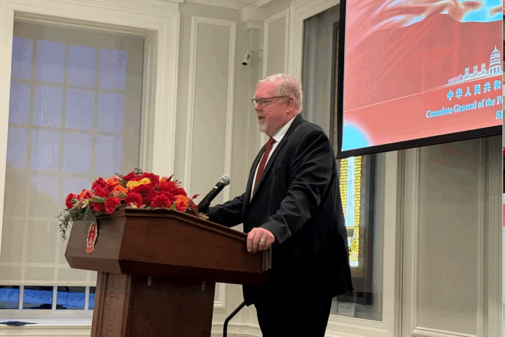 中国驻芝加哥总领事王保东在致辞中表示,76年来,中国在中国共产党的坚强领导下,实现了从“站起来、富起来到强起来”的伟大飞跃,创造了经济快速发展与社会长期稳定两大奇迹。王总领事指出,当前中国经济韧性十足,绿色转型与新兴产业发展势头强劲,为全球经济注入了宝贵动能。与此同时,中国积极参与并推动全球治理,提出一系列重大倡议,为世界和平与发展贡献智慧与力量。