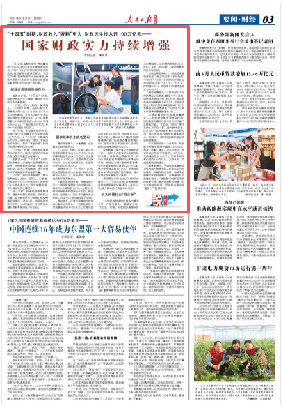 激活消费潜力——财政部大力支持消费品以旧换新,截至今年8月底,国家财政共投入约4200亿元,带动各类商品销售额超2.9万亿元。安排专项资金,支持开展县域商业建设行动,引导释放乡村消费潜能,“十四五”以来乡村消费品零售额增长24%。