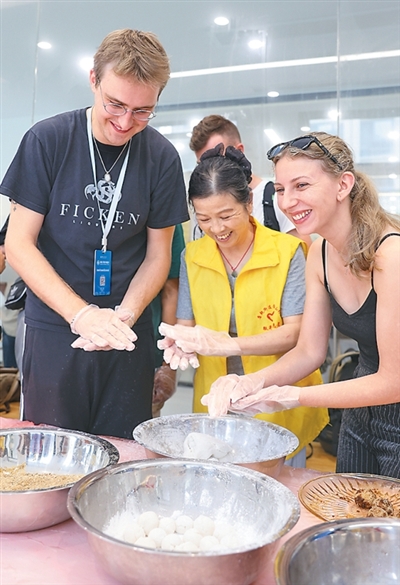 比利时学生在汉语桥团组项目中制作糯米圆子。赵 宁摄(人民视觉)