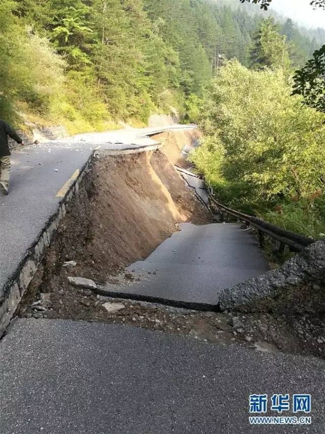 地震发生后,景区工作人员在景区内展开排查,搜寻失踪人员,查看并统计灾情。目前景区道路多个海子存在不同程度受损,多处山体垮塌。