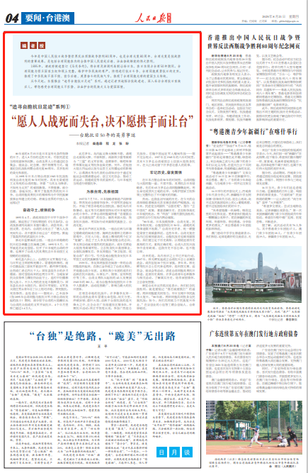 今年是中国人民抗日战争暨世界反法西斯战争胜利80周年,也是台湾光复80周年。台湾光复是抗战胜利的重要成果,是包括台湾同胞在内的全体中国人民前赴后继、浴血奋战铸就的伟大胜利。