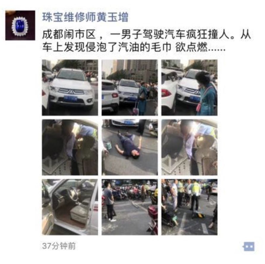成都一车辆闹市区疯狂打转 冲撞警察路人 撒传单(视频)