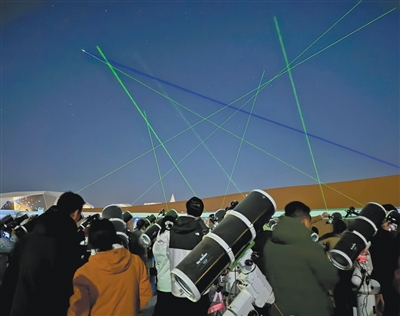 “爸爸,那颗星星好亮!”“是啊,你知道它叫什么吗?”来自广东的游客黄庆秋带着女儿仰卧在观星椅上,参照着手机里的观星软件,为女儿进行讲解。“我们是专程来这里看星星的。听说凌晨还能看到银河,已经把闹钟设置好了。”黄庆秋说。