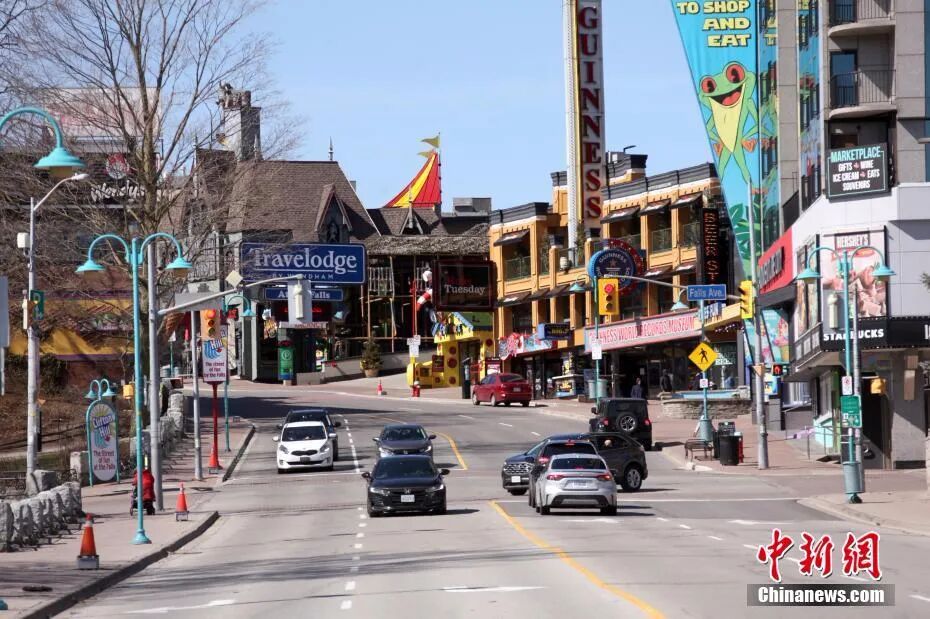 资料图:加拿大、美国交界处的著名景点尼亚加拉大瀑布群加拿大一侧,一条游乐街区游客寥寥。中新社记者余瑞冬 摄