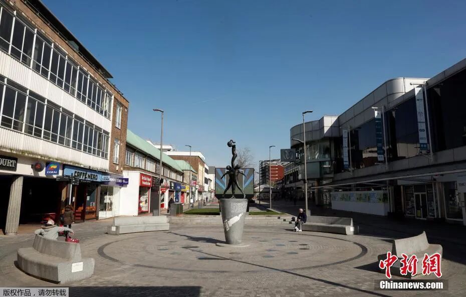 资料图:英国赫默尔亨普斯特德,城市街头冷冷清清。