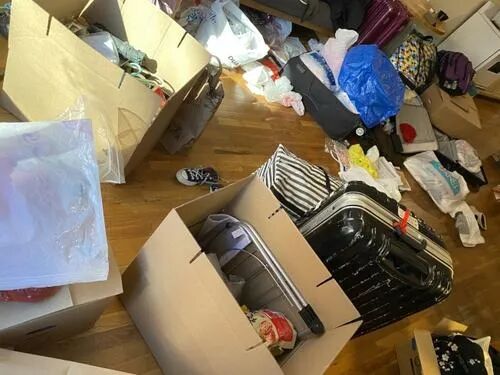 周雨及室友在收到邮件后慌忙收拾行李。(周雨提供)