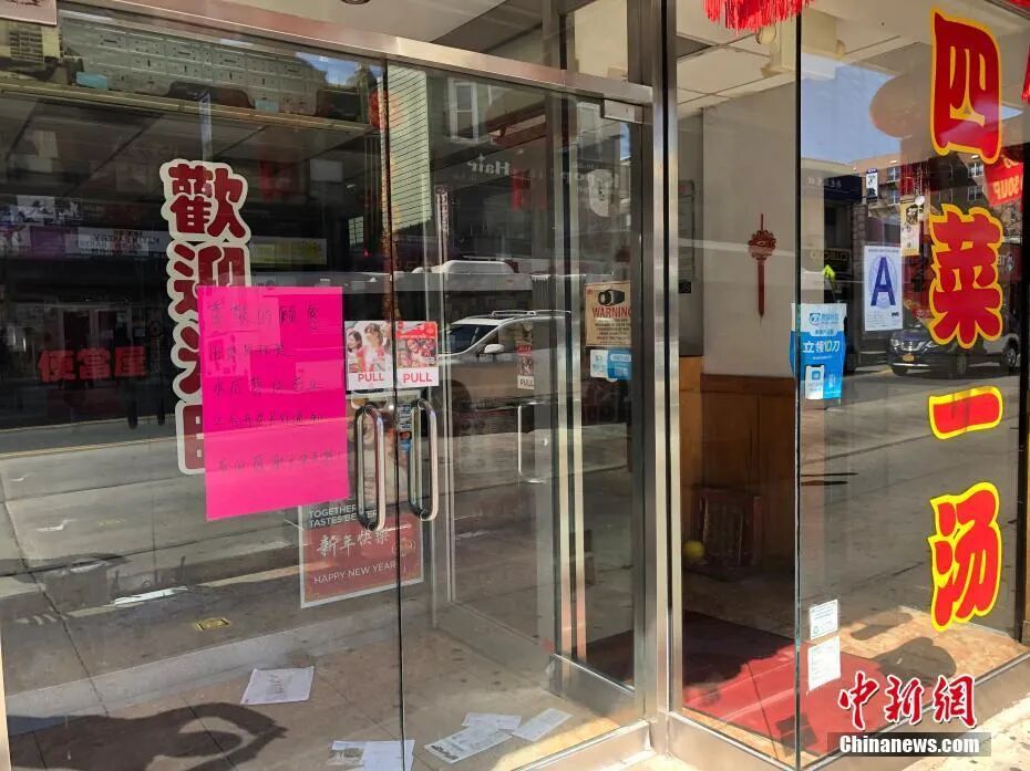 纽约市华人聚居区法拉盛的一家餐厅,受疫情影响停业。 图片来源:中国新闻网