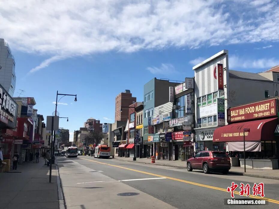 纽约市华人聚居区法拉盛的罗斯福大道,往日人头攒动的街头行人寥寥。图片来源:中国新闻网