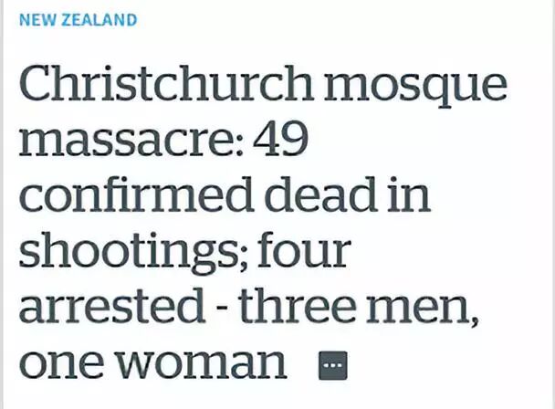 2、媒体表示,今天至少有2名歹徒在两座清真寺发生了枪击事件,其中一座位于Deans Ave,另一座位于Linwood附近。还有报道称在克赖斯特彻奇医院发生了第三起事件。