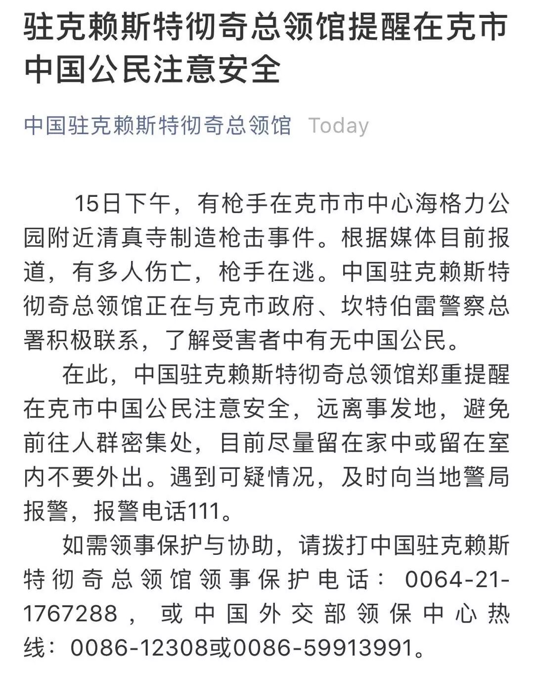 中国总领馆紧急发提醒