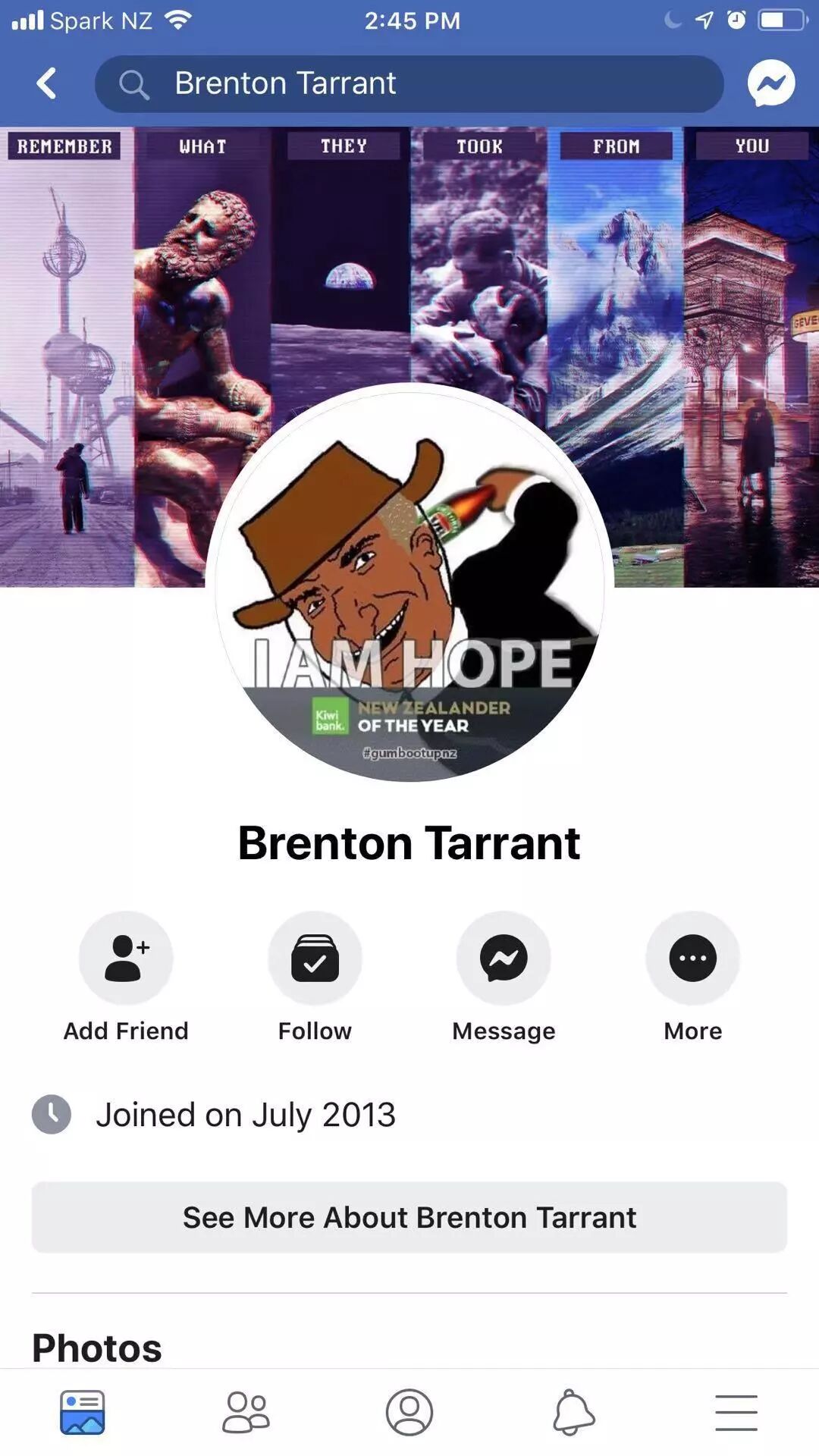 已经曝光的枪手在推特上的名字为Brenton Tarrant”,澳大利亚人。在大规模杀人前,他曾写下一篇长达73页的宣言书,公开了自己的杀人意图。枪手自称只是一个普通的白人男性,今年28岁,出生在澳大利亚一个工人阶层、低收入家庭。其父母有苏格兰、爱尔兰和英格兰血统。“我度过了一个很平常的童年,没遇到过什么大问题。”“我上学期间对教育毫无兴趣,勉强及格。我也没有上大学,因为我对大学里提供的教育毫无兴趣。我工作过一段时间,后来开始在Bitconnect上投资了点钱,然后用赚来的钱去旅游。最近我还兼职做过烤肉串搬运工。”另据报道,枪手在推特上注册的用户名是“布伦顿•塔兰特”,根据信息显示,这一账号是在今年2月,也就是上个月刚开通的。他在社交媒体上发布了他打算向清真寺开枪的意图,随后将直播。这一直播是从第一人称的视角进行拍摄的,在一片段开头有一名男子说了一句:“让我们将这个聚会开始吧!”然后他驾驶了大概六分钟,并最终离开车子。随后,枪手进入了一个看起来像是清真寺的地方,有时是近距离射击。大约六分钟后,他开始开车去另一个地方。“甚至没有时间瞄准,目标太多了,”他说。一名似乎是枪手的男子在袭击开始前不久在Twitter和在线论坛8chan上发布了一份长长的声明。在这份文件中,他自称是28岁的澳大利亚人。在随后,这段视频迅速在社交媒体上传播开来。