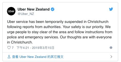 Uber已表示,基督城全城暂停使用。