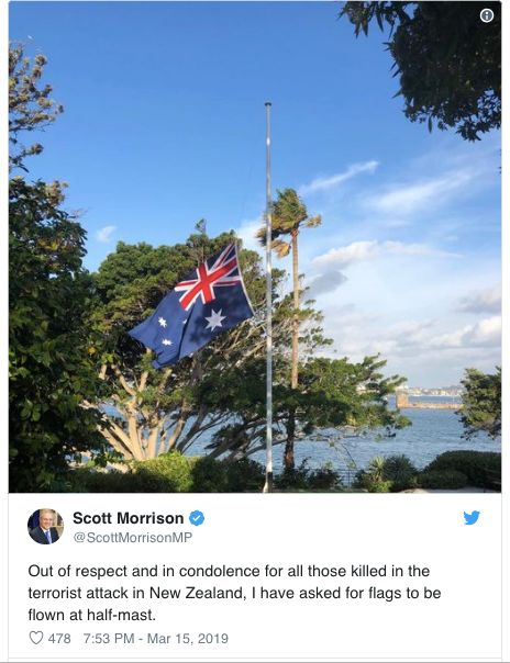 澳大利亚总理斯科特·莫里森(Scott Morrison)要求澳洲降半旗,以示哀悼。