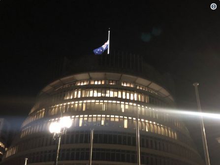 新西兰总理杰辛达已要求新西兰国旗降半旗,以示哀悼!图为新西兰首都惠灵顿国会大厦楼顶国旗已降半旗。
