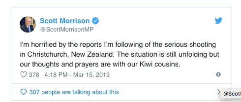 澳大利亚总理斯科特莫里森发文表示哀悼。