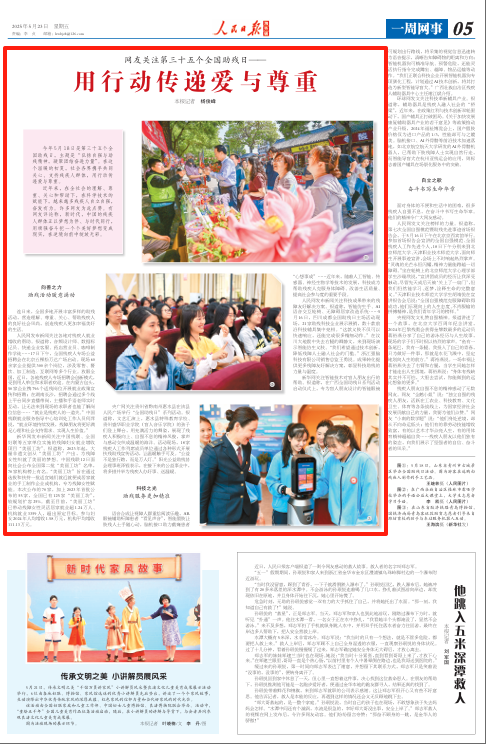 人民网发文关注榜样的力量。报道称,第七次全国自强模范暨助残先进事迹首场报告会,于5月16日下午在北京京西宾馆举行。参加首场报告会宣讲的全国自强模范、全国残疾人工作先进个人,18日下午分别来到北京师范大学、天津职业技术师范大学,面向师生开展事迹宣讲,会场上不时响起热烈掌声。“灵魂的光芒永恒闪耀,精神力量能跨越一切障碍。”坐在轮椅上的北京师范大学心理学部学生沙瑞欣说,“宣讲团成员的经历让我深受触动。尽管先天或后天被‘关上了一扇门’,但我们仍然能学习、逐梦,诠释生命的完整意义。”天津职业技术师范大学学生胡靖悦在宣讲报告会后说:“全国自强模范克服障碍取得成功,他们乐观向上的人生态度、不肯服输的拼搏精神,是我们青年学习的榜样。”