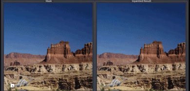 动图感受一下…左边是被涂掉的原图,右边是自动修复后的图…